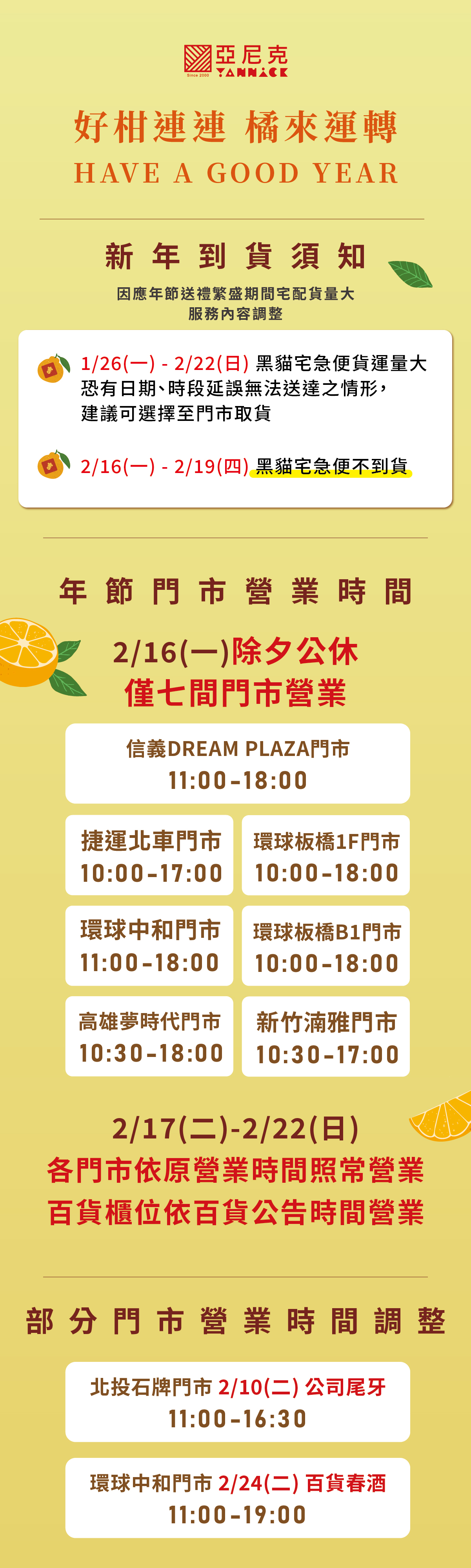 好柑連連🍊橘來運轉~年節營業時間與配送時間調整