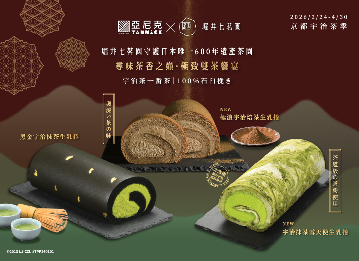 以招牌原味生乳捲口味帶出味蕾之旅。將古京都-宇治的日月精華濃縮在生乳捲切片中,由黑金宇治抹茶的奢華入口,在到濃郁高雅的宇治抹茶,最後由渾厚溫潤的極濃宇治焙茶收尾。每一口都充滿個性風采,值得配上一杯好茶,細細品嘗,享受日常。