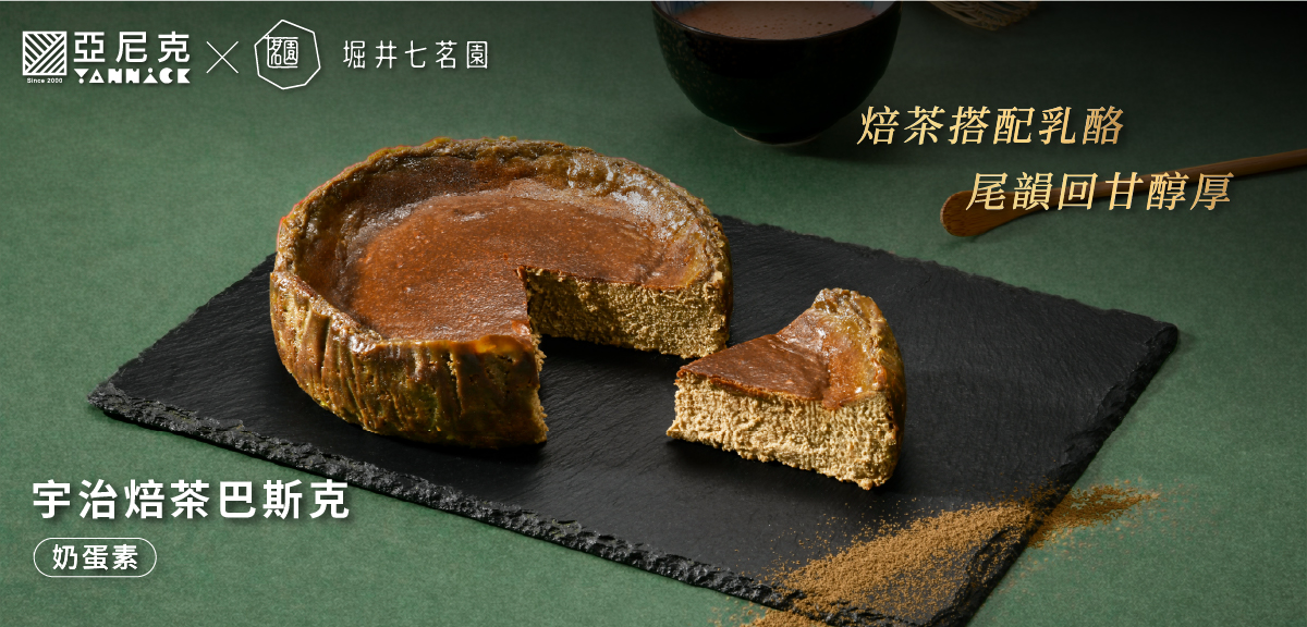 焙茶溫潤質感的獨有烘烤香,與起司焦香完美融合。由北海道生起司、高達熟成起司搭配宇治焙茶,尾韻回甘醇厚,半熟口感入口即化。