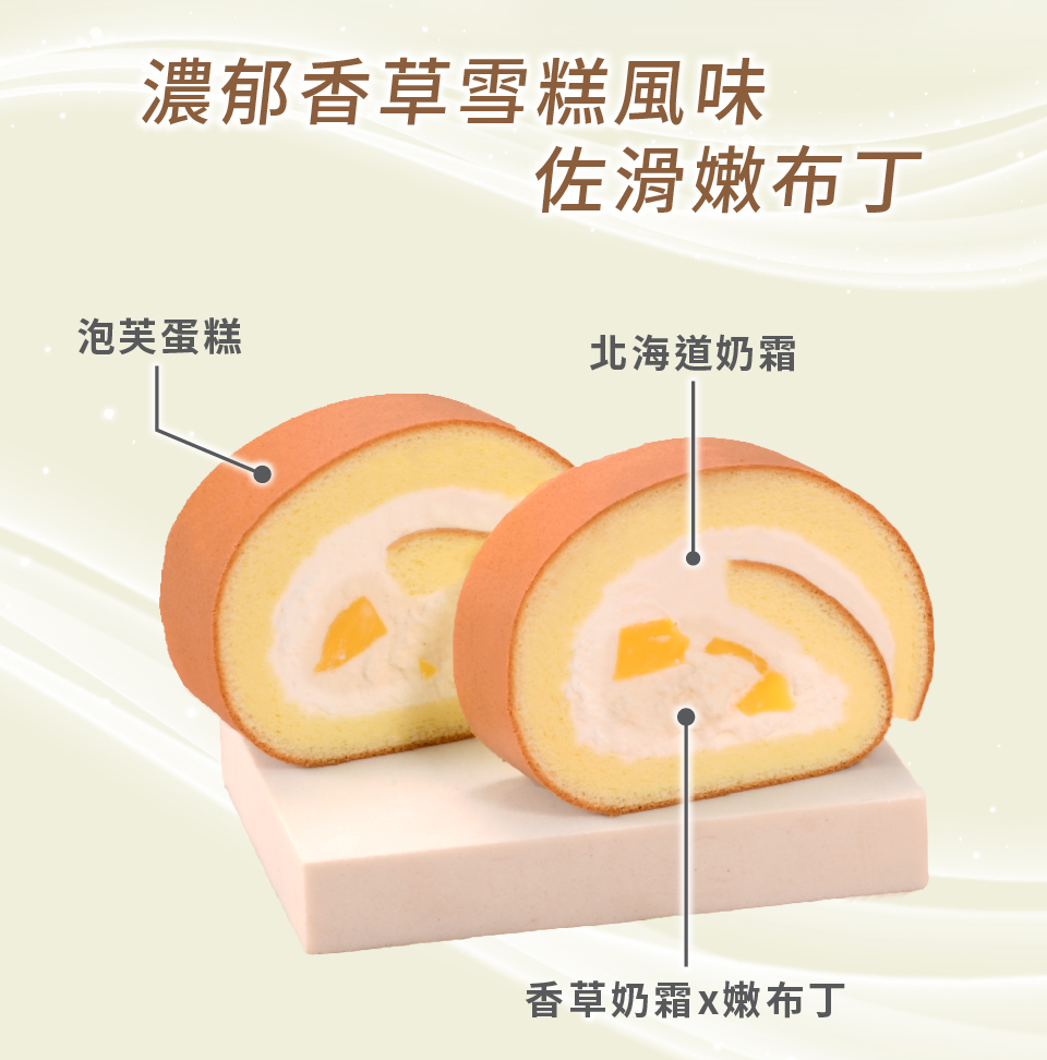 團購任選4件88折 $370/條▶每月6號 生乳捲日只要 $348/條團購任選7件76折 $319/條▶每月6號 生乳捲日只要 $300/條12/1起陸續出貨濃郁香草雪糕風味佐滑嫩布丁乳香豐腴的北海道奶霜佐特調香草奶霜與滑嫩布丁。香草奶霜嚴選法國進口馬達加斯加香草籽醬,讓奶霜充滿香草籽的芳香,濃郁又清爽的香草雪糕風味搭配滑溜的布丁帶來爽口的層次口感,簡單卻令人雀耀的滋味!產品附贈表格 產品 附贈狀況 產品 附贈狀況 盤叉 ✗ 小牙刀 ✓ 提袋 ✓ 蠟燭 ✗