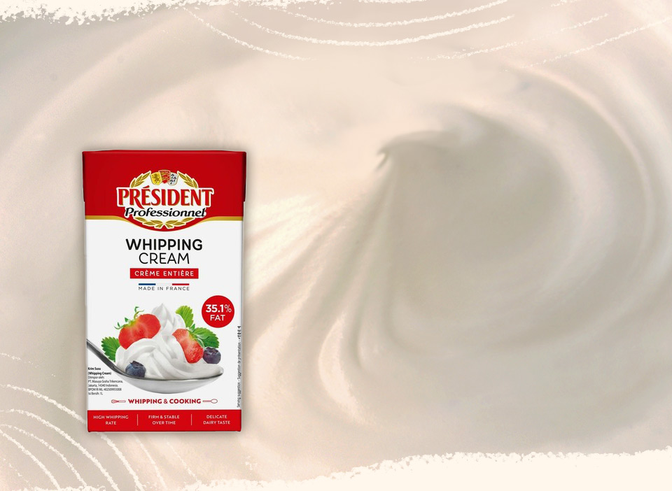 總統牌鮮奶油產自法國布列塔尼及諾曼地等地區,純淨肥沃的天然畜牧環境孕育出香醇可口的生乳品質! 豐富的鈣質及維他命來源:每100公克的鮮奶油,提供80毫克至90毫克的鈣質,較牛奶含有更高的脂溶性維他命A、D、E、K! 用於西式料理、糕點烘焙,濃純的芳香帶出馥郁的口感!打發效果佳,綿密細緻的質地,更是慕斯奶醬甜點類的最大優勢!