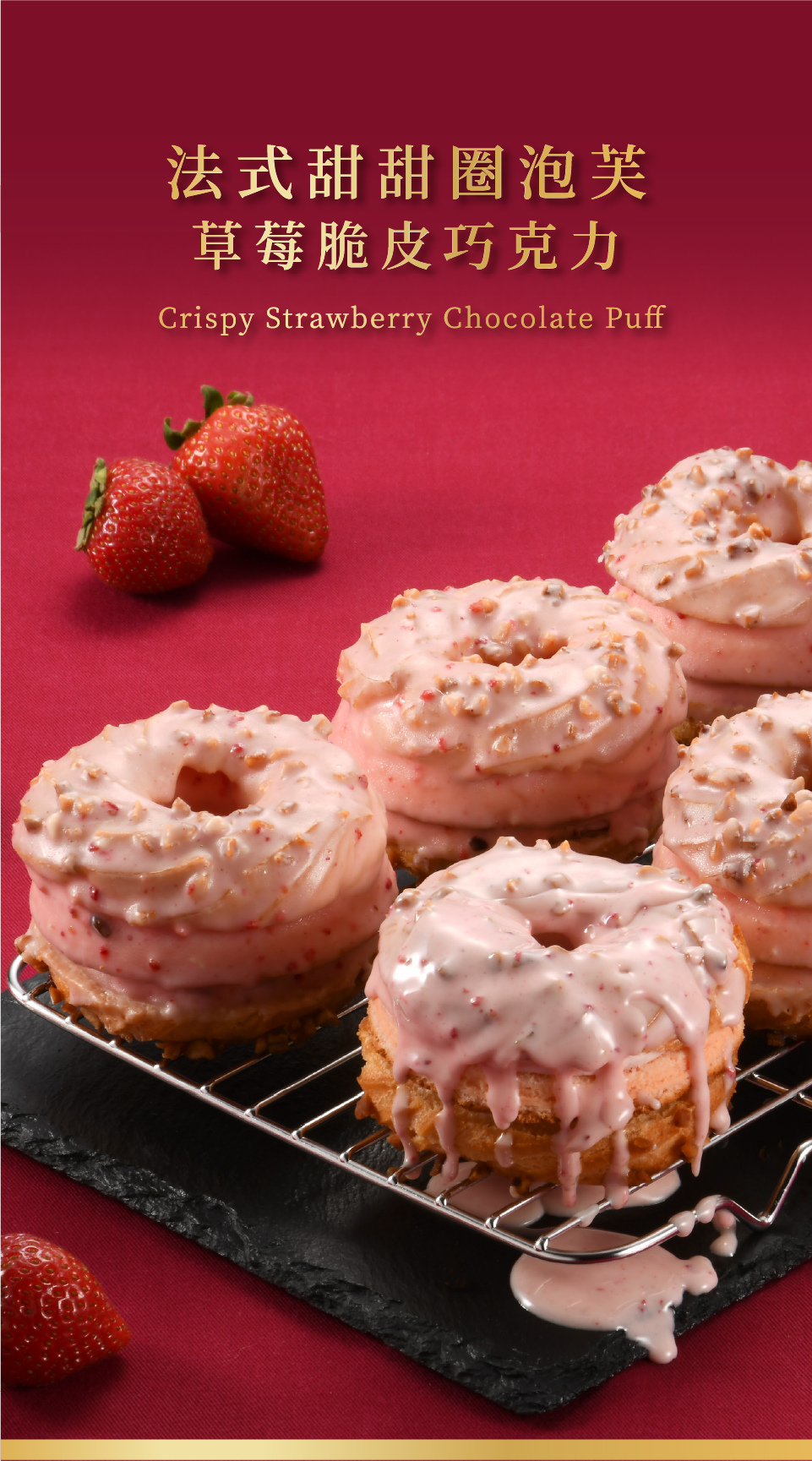 法式甜甜圈泡芙-草莓脆皮巧克力 法式甜甜圈泡芙-草莓脆皮巧克力