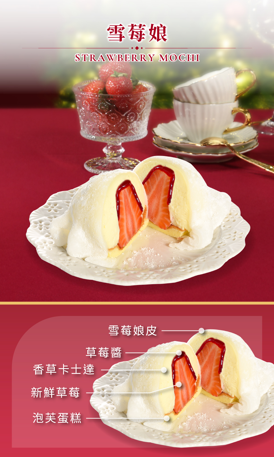 品名:雪莓娘主要內容物:雪莓娘皮/新鮮草莓/香草卡士達/草莓醬葷素:奶蛋素規格:1顆保存期限:冷藏1~2天內食用完畢,實際保存期限請見包裝標示