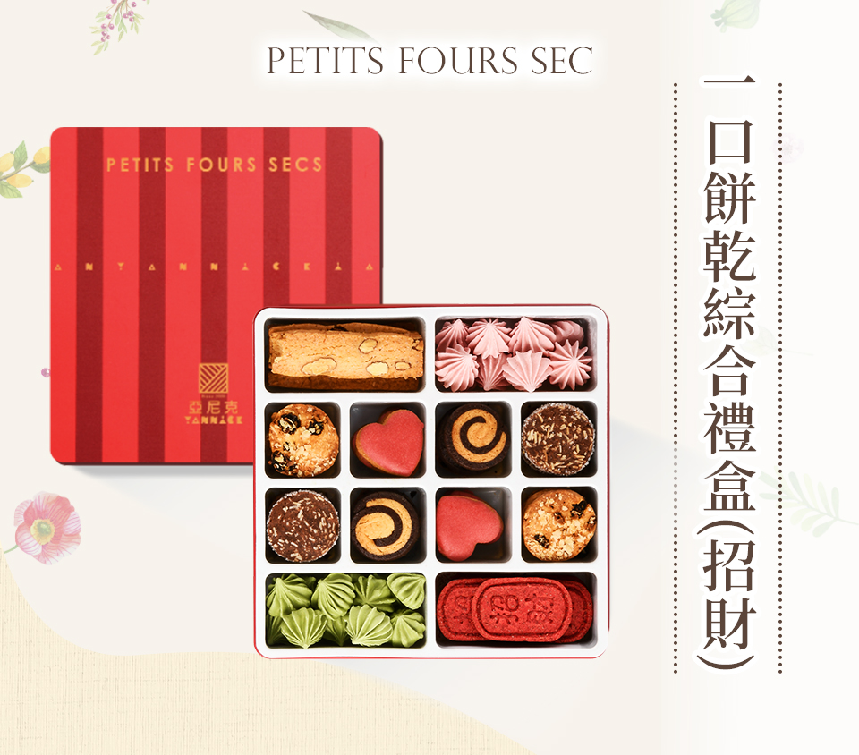 品名:一口餅乾禮盒(S)-招財主要內容物:巧克力杏仁/捲餅乾/燕麥葡萄/愛心糖霜/義大利巧克力脆餅/梅子奶油餅乾(招財)/法式蛋白餅-覆盆子/法式蛋白餅-靜岡抹茶葷素:奶蛋素保存期限:常溫30天◎依不同通路銷售及配送方式不同,實際效期依包裝所示