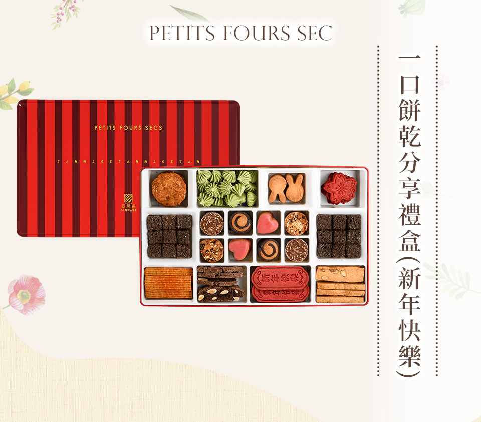 品名:一口餅乾禮盒(L)-新年快樂主要內容物:巧克力杏仁/捲餅乾/燕麥葡萄/愛心糖霜/脆杏仁餅/義大利巧克力脆餅/梅子奶油餅乾(櫻花)/杏仁瓦片/帕馬森起司/兔兔/法式蛋白餅-靜岡抹茶/梅子奶油餅乾(新年快樂)/石疊-黑巧克力葷素:奶蛋素商品尺寸:35.5*21.5*5cm保存期限:常溫30天◎依不同通路銷售及配送方式不同,實際效期依包裝所示