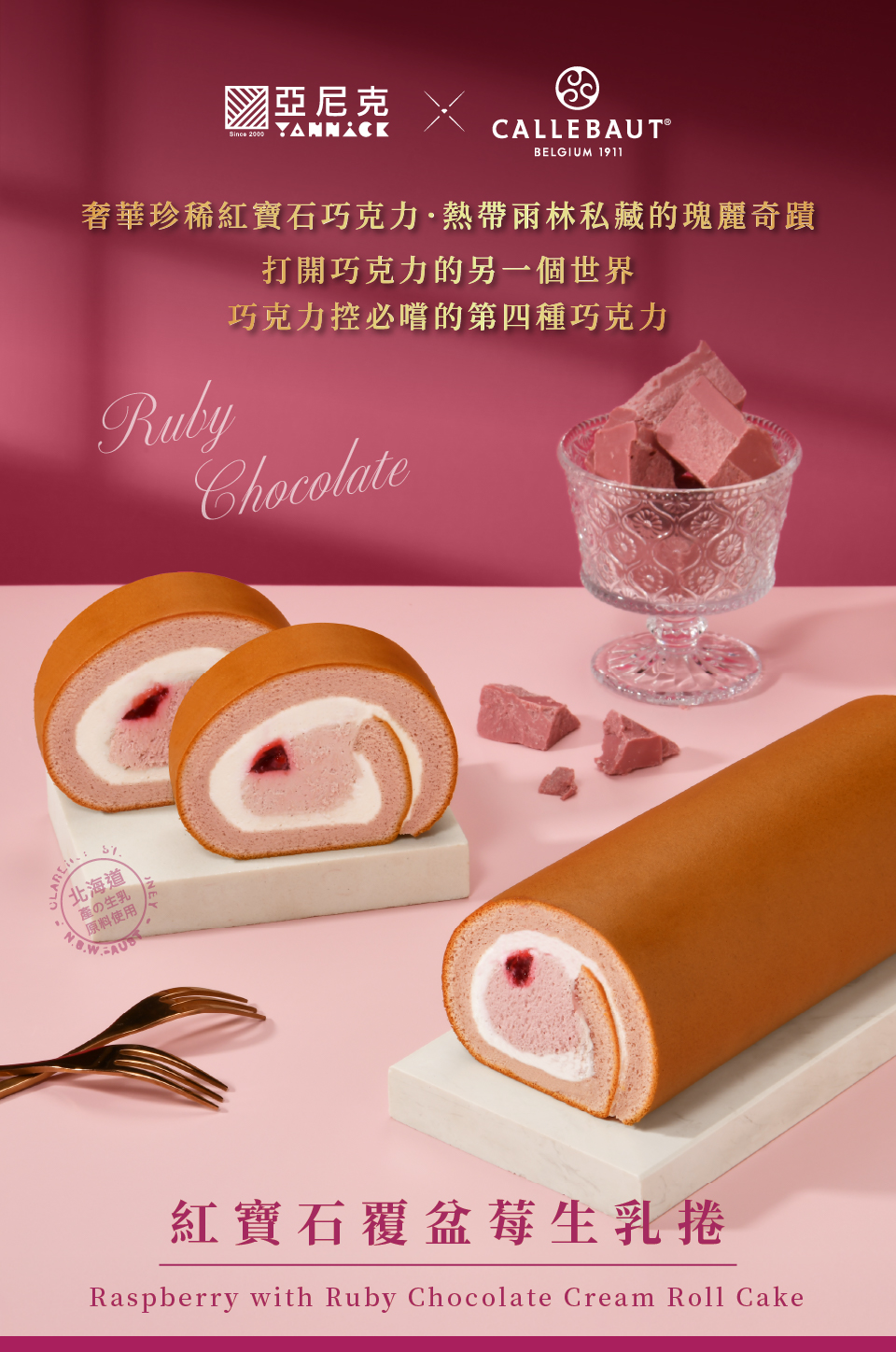 品名:亞尼克生乳捲-紅寶石覆盆莓主要內容物:紅寶石巧克力泡芙蛋糕/北海道奶霜/紅寶石巧克力覆盆莓奶霜/覆盆莓果餡葷素:葷規格:1條/盒商品尺寸:18x8.5x6.5保存期限:冷藏2~3天內食用完畢,實際效期依包裝所示