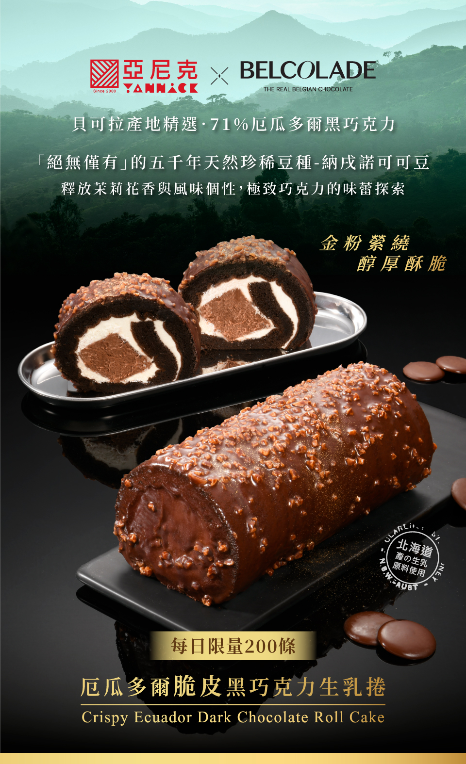 品名:亞尼克生乳捲-厄瓜多爾脆皮黑巧克力主要內容物:特黑泡芙蛋糕/北海道奶霜/厄瓜多爾黑巧克力慕斯/厄瓜多爾巧克力杏仁淋面葷素:葷規格:1條/盒商品尺寸:18×8.5×6.5公分保存期限:冷藏2~3天內食用完畢◎依不同通路銷售及配送方式不同,實際效期依包裝所示