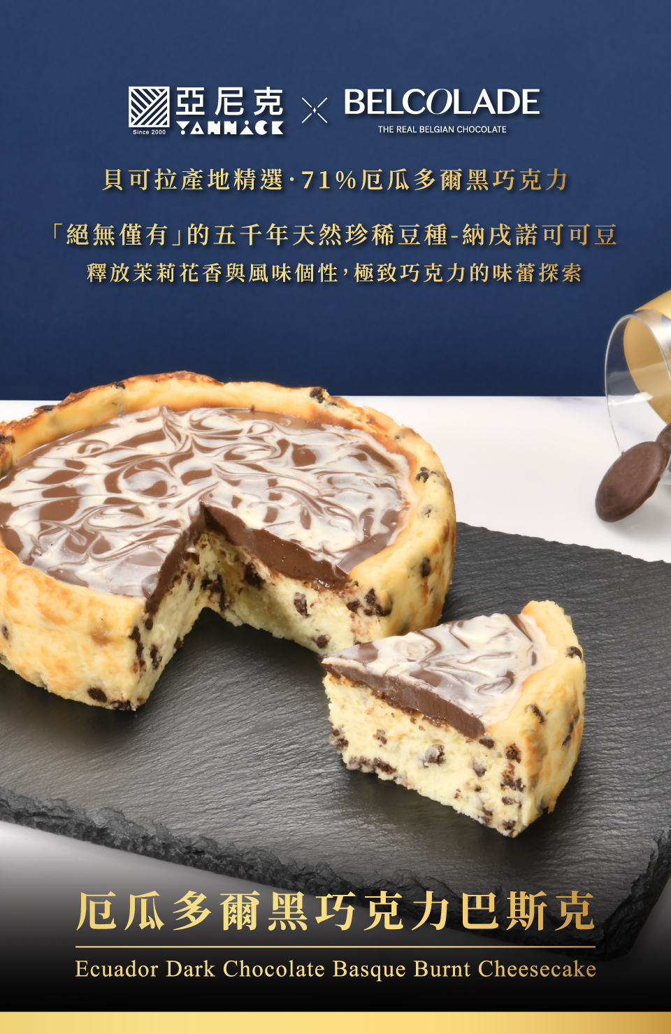 品名:厄瓜多爾黑巧克力巴斯克主要內容物:澳洲奶油乳酪/北海道奶油乳酪/蛋/法國鮮奶油/高達乳酪/巧克力豆/厄瓜多爾巧克力蛋奶餡葷素:奶蛋素規格: 1顆/盒商品淨重:約545g保存期限:冷藏3~6天內食用完畢◎依不同通路銷售及配送方式不同,實際效期依包裝所示
