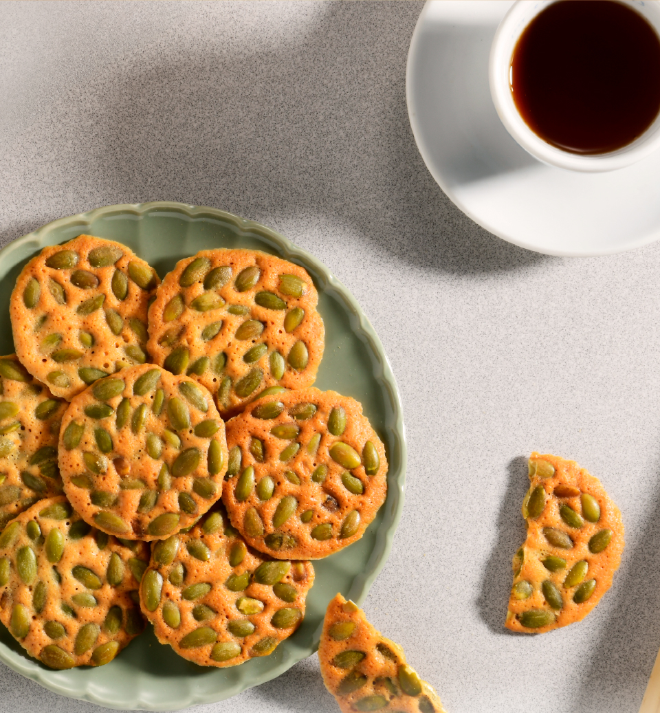 又香、又酥、又脆的薄片口感,亞尼克最暢銷的餅乾。南瓜子鋪滿整個餅乾,嚴選日本昭和麵粉營造薄脆口感,搭配法國進口發酵奶油,入口盡是烘烤的焦糖奶油香氣與南瓜子的堅果香氣完美融合,唰嘴到讓人忍不住一口接一口...