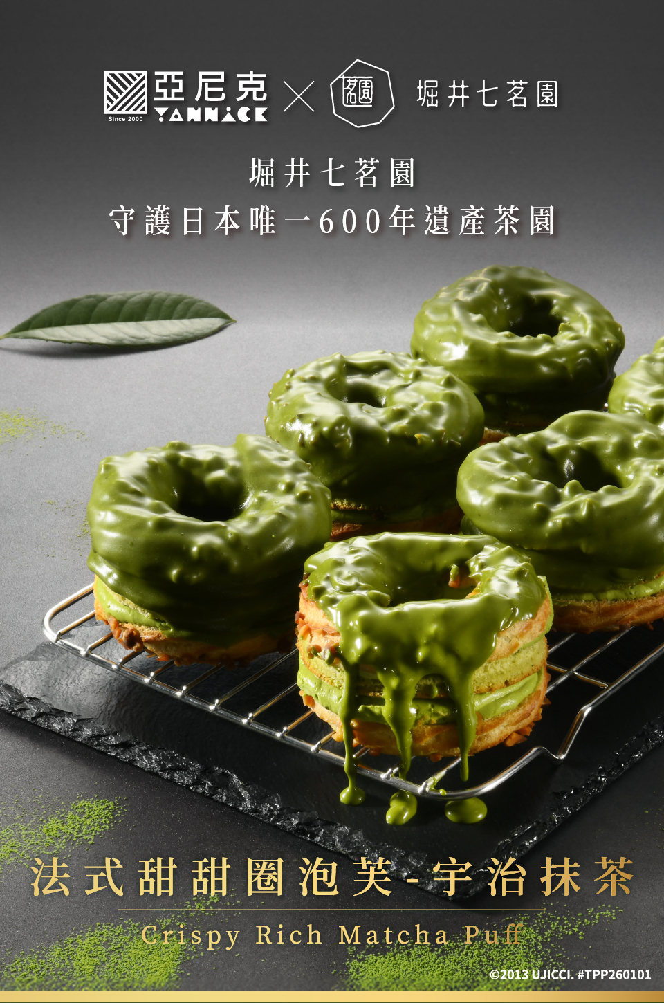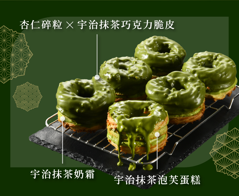 品名:法式甜甜圈泡芙-宇治抹茶主要內容物:泡芙/杏仁碎粒/宇治抹茶奶霜/宇治抹茶泡芙蛋糕/宇治抹茶巧克力脆皮葷素:奶蛋素規格:1顆保存方式:冷藏保存期限:冷藏2~3天內食用完畢,實際保存期限請見包裝標示